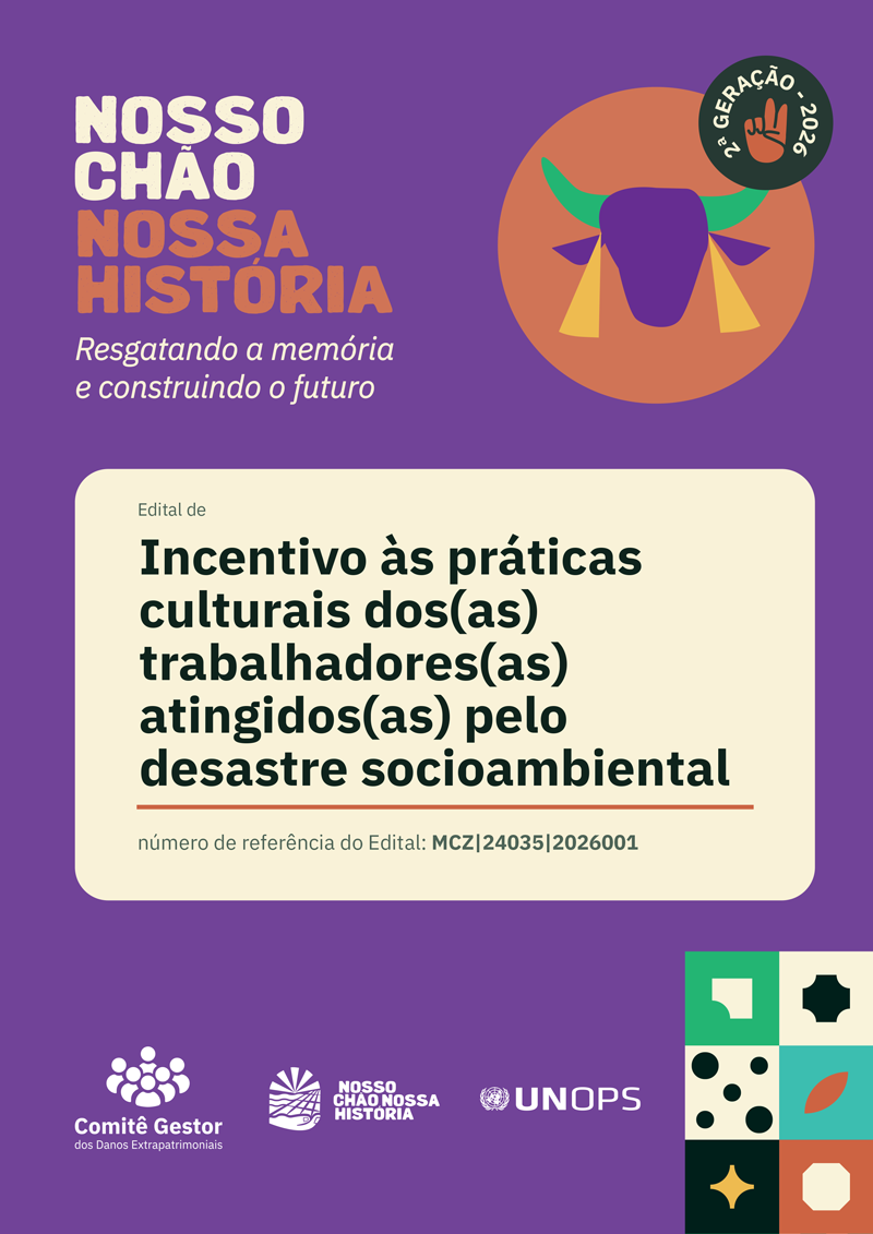 Este edital tem como objetivo estabelecer parceria com uma organização da sociedade civil (OSC) para o incentivo às práticas culturais de trabalhadores e trabalhadoras atingidos pelo desastre, com o objetivo de atender ao maior número possível de agentes culturais.